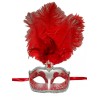 Masquerade Red Silver Venetian Mask Feather Masquerade Mardi Gras 12" New