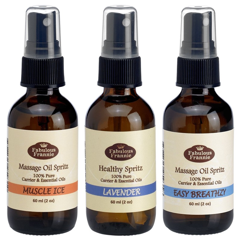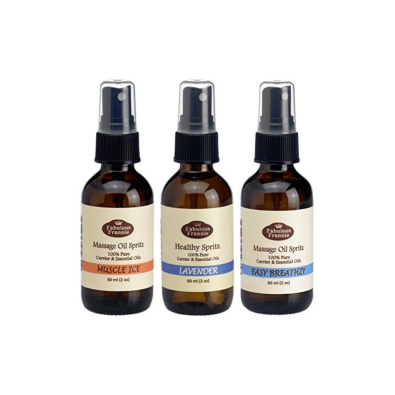 Massage Spray Trio Aromatherapy Oils 2 oz Set includes Muscle Ice (Formally Aches & Pains), Easy Breathzy (Formally Cold & Flu) and Lavender