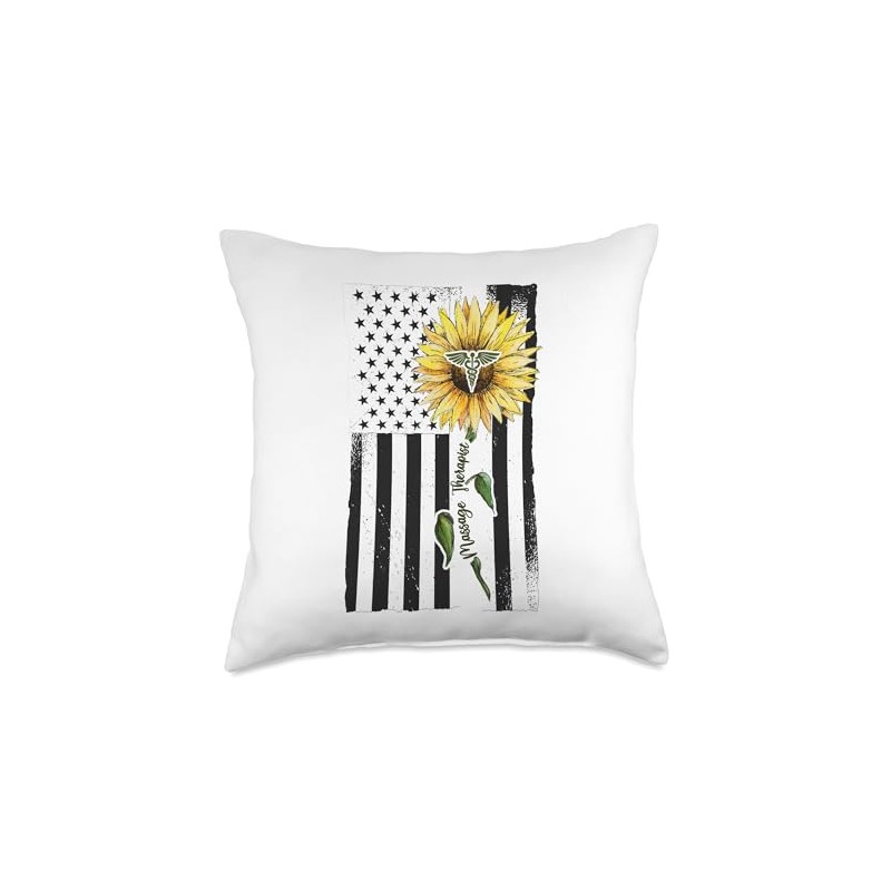 Massage Therapist Patriotic Sunflower Usa American Flag Throw Pillow
