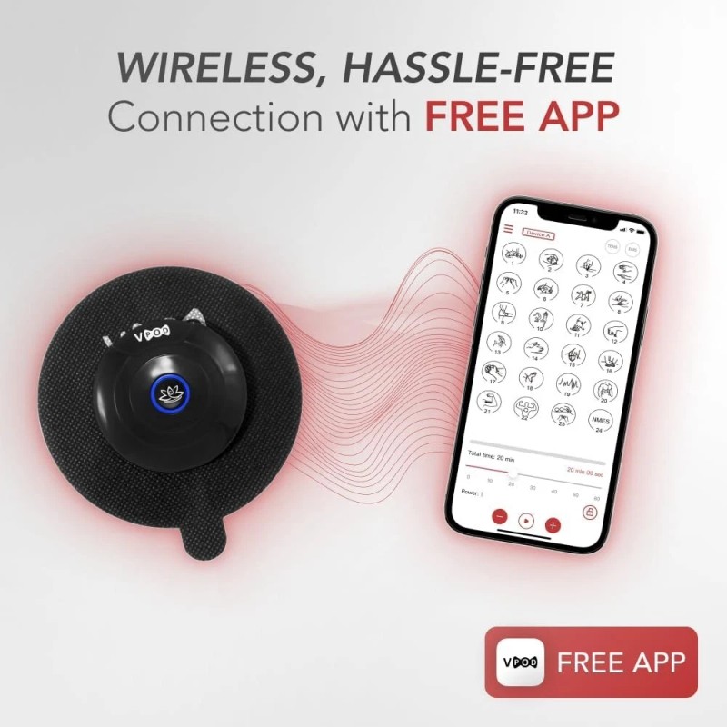 - & : Experience drug-free pain relief and recovery wherever you are. This Bluetooth-enabled Wireless TENS Unit Muscle Stimulator allows easy control through the free VPOD app on your smartphone, and features a long-lasting rechargeable lithium battery for hassle-free use.
