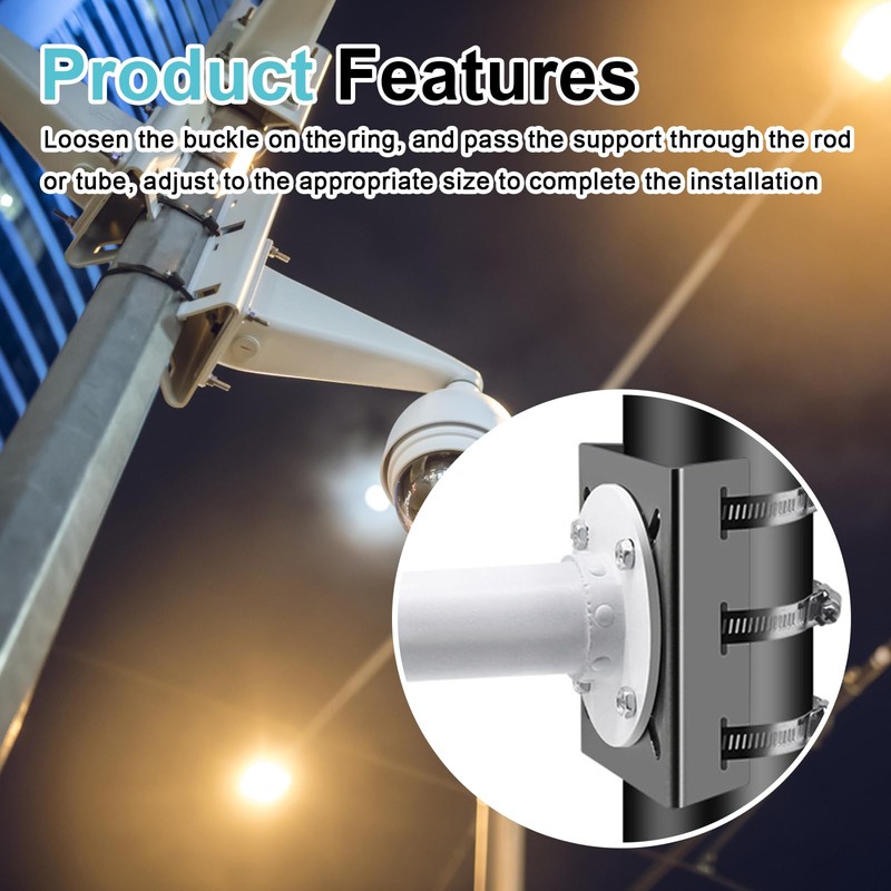 - Clamp: The pole holder uses stainless steel clamps and locking heads, which are durable and corrosion resistant to ensure the mounting effect. The surface of the pole is sprayed with anti-rust paint, which is resistant to high and low temperatures and is suitable for most security cameras.