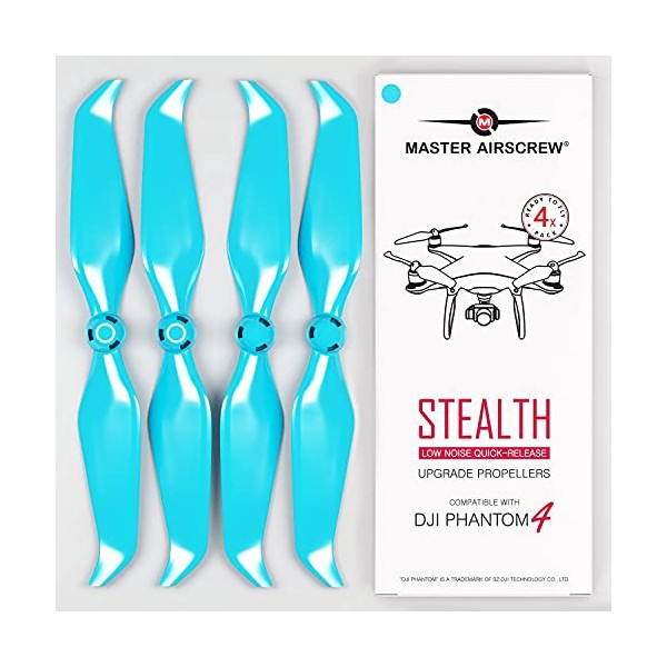 - 100% COMPATIBLE: "Quick-release" color coded propellers, designed for perfect fit and direct plug&play operation within seconds. Natively connecting to the drone motor attachments, the Phantom 4 Stealth Propellers are fully compatible with all Phantom 4 modifications, including Pro, Pro V2.0, Advanced and RTK.
