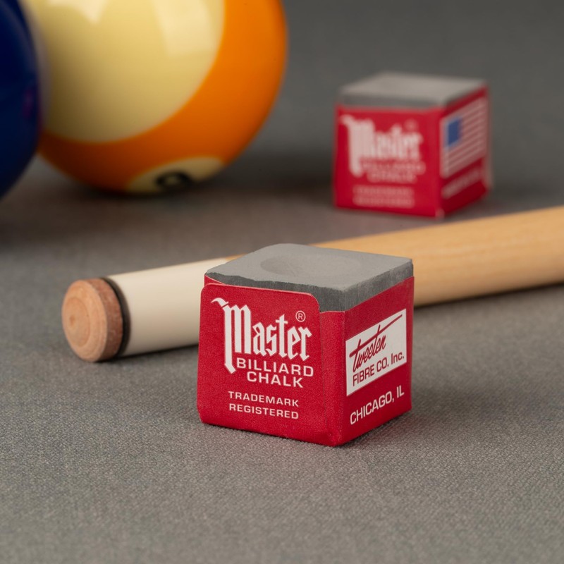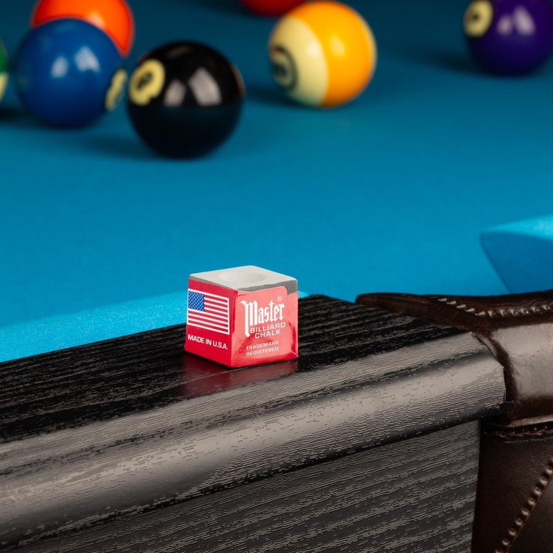 Master Billiard Pool Chalk, Pack of 12 Cubes, Grey, with Protective Box - Professional Billiards Chalk for Smooth, Even Coating on Cue Tip - Pool Table Accessories Gifts for Men (18-336)