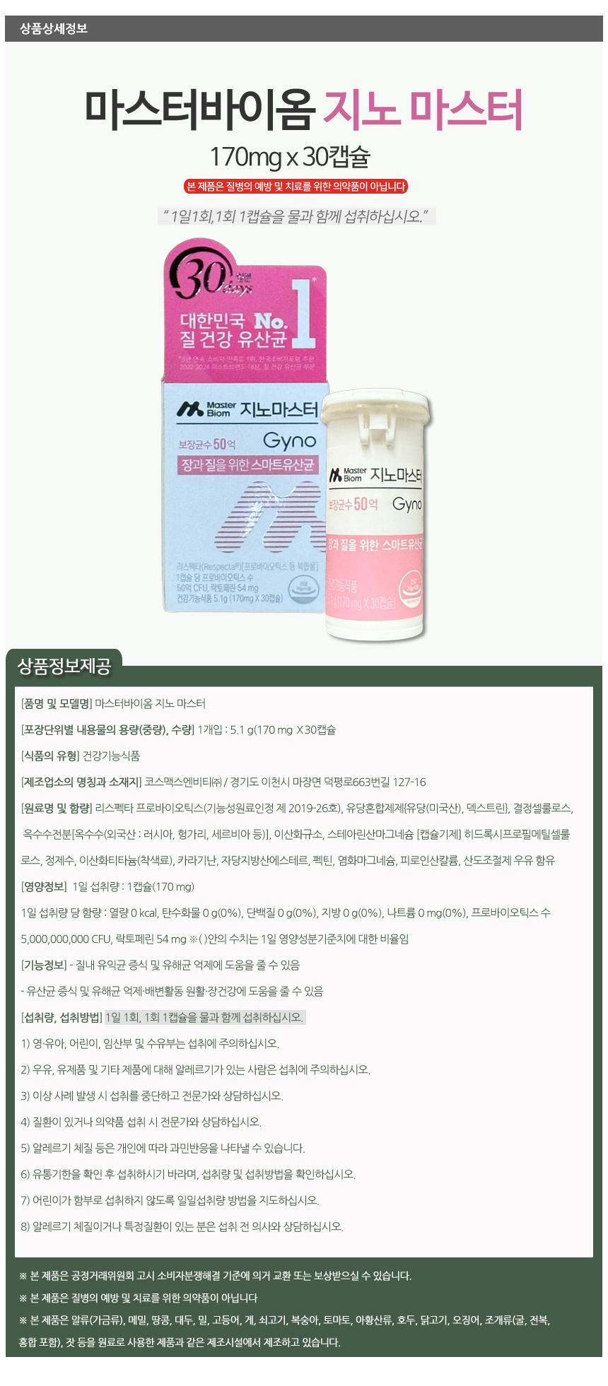 마스터바이옴 지노 마스터 170mg x 30캡슐 x 4개