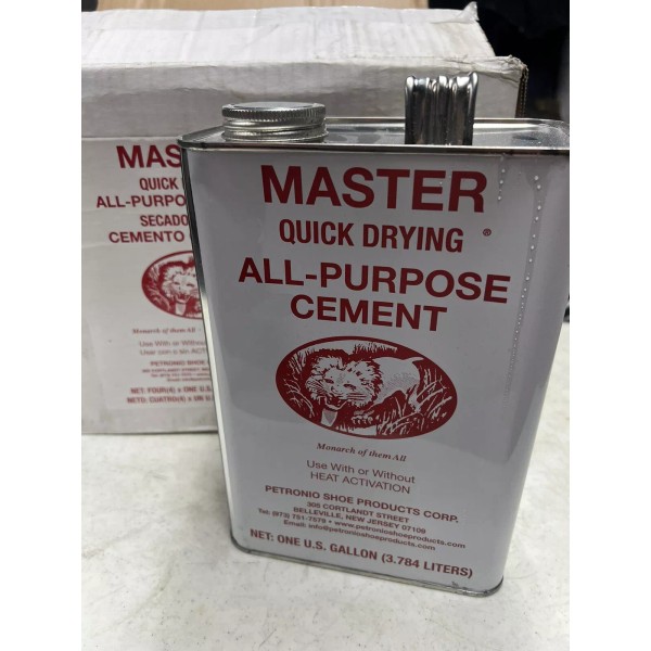 This gallon of Master Quick Drying All-Purpose Cement is perfect for all your shoe repair needs. Whether you're fixing a sole, attaching a heel, or just sealing a seam, this cement is up to the task. With or without heat activation, it provides a strong and durable bond that will keep your shoes looking great for a long time.
