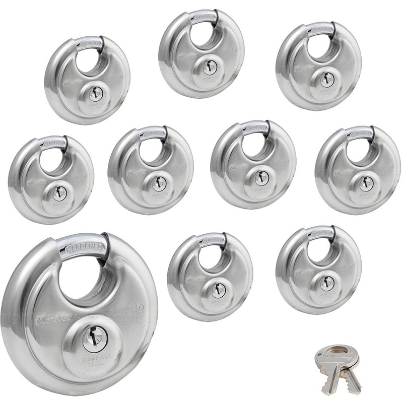 Master Lock - (10) Keyed Alike Stainless Steel Trailer and Multi Purpose Padlocks w/20 Keys, 40KA-10