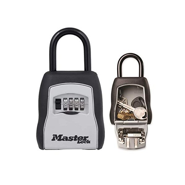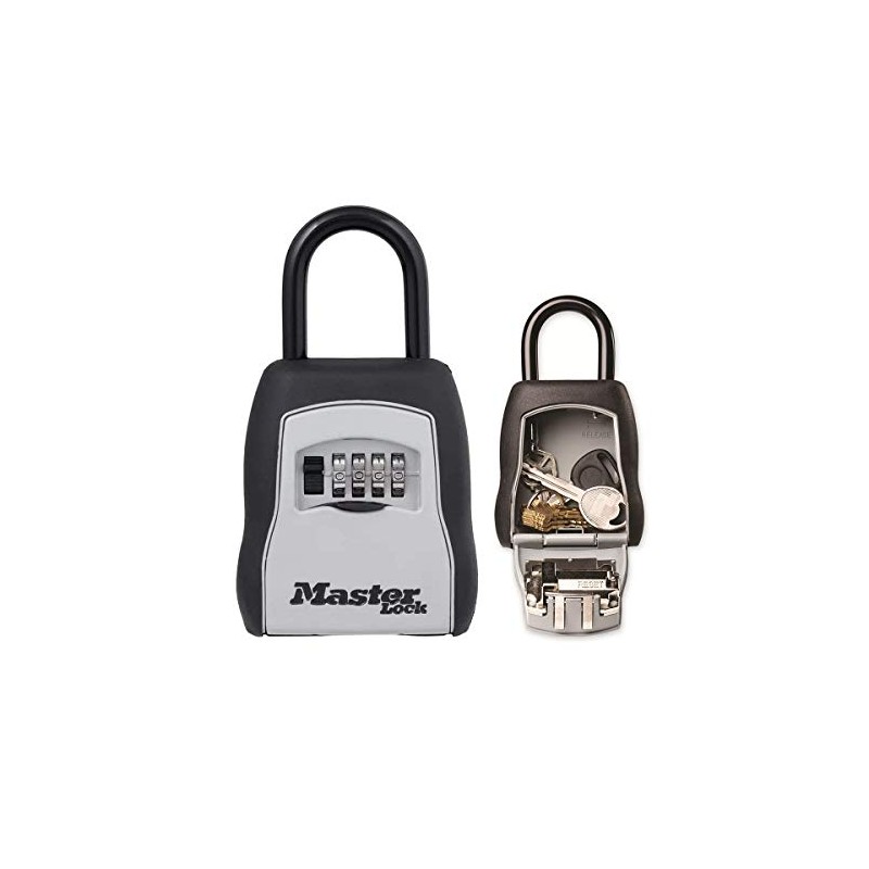 Master Lock 5400EURD Portable Key Safe [Medium Size] [Outdoor] -5400EURD-Key Lock Box with Shackle, ys/m, Black & Silver