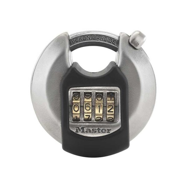 Master Lock 70mm wide Excell zinc discus padlock with shrouded shackle; set-your-own combination