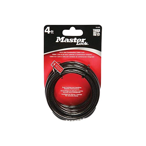 Master Lock 8143D Self Coiling Cable Lock, 4-Feet x 5/16-inch, Black