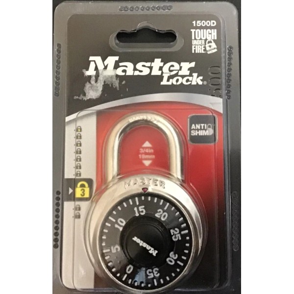 Master Lock Anti-Shim 3-Digit Combination Lock #1500D Black 013