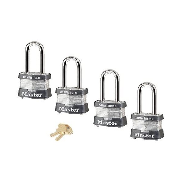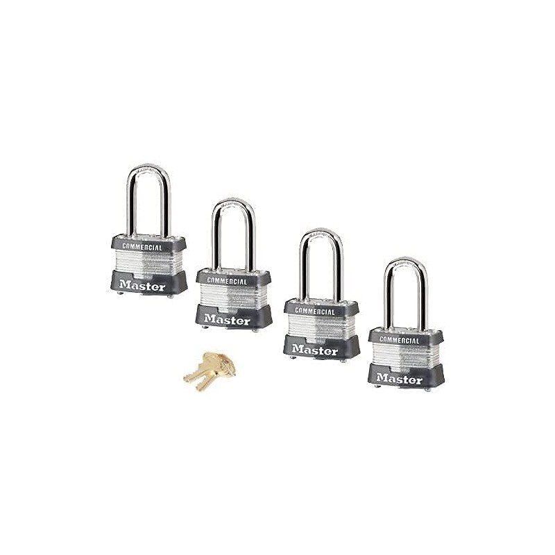 - These padlocks are ideal for all outdoor applications when needing multiple locks that utilize ONLY one key. Features a 1-9/16in (41mm) wide reinforced laminated steel body with black bumper and a 1-1/2in (38mm) tall, 9/32in (7mm) diameter shackle.