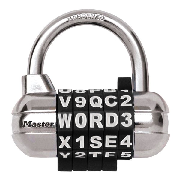 Master Lock Padlock, Set Your Own WORD Combination Lock, 2-1/2 in. Wide, Black, 1534DBLK