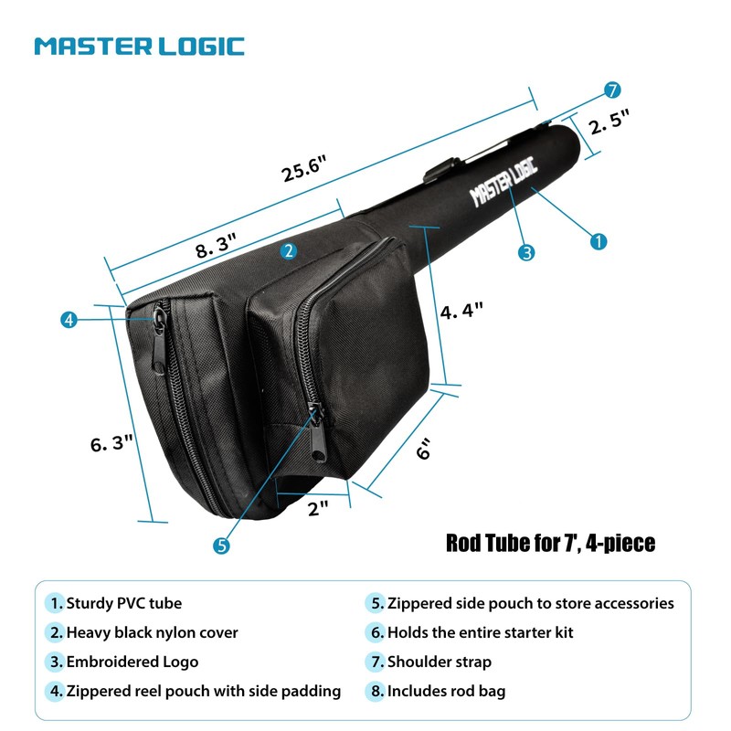 - Standard Fly Fishing Combo Starter Kit: MASTER fly fishing rod combo includes a performance fishing rods 3/4 weight, 7FT, 4 Piece, 3/4WT aluminum large arbor reel with line, a rod case, a fly box, 12 hand tied lures, spare leader, zinger and nipper, a carrier case, very easy to carry around. Perfect to start fishing at a budget
