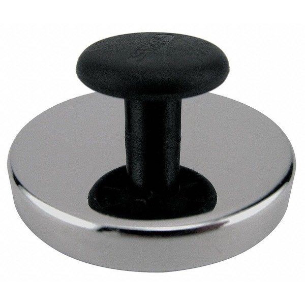 Round Magnet with Handle, Material Ceramic Magnet, Vinyl Handle, Max. Pull 20 lb., Overall Height 1 In., Diameter 2 In., Casing Material Steel, Stability Temp. 400 Degrees F, Includes Nonscratch Liner '