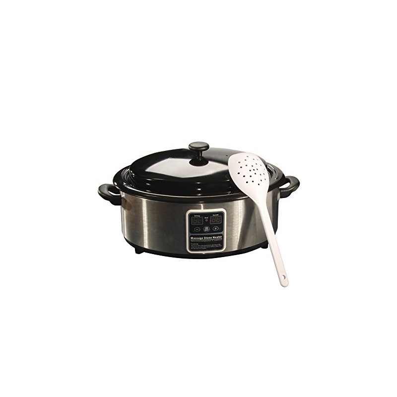 This professional 6 quart stone heating unit maintains a constant, even temperature so your massage stones are always ready to use. This is an ideal unit for both hot stone massage and warm stone massage. The Stone Heater is very easy to use. Fill the bowl with cold water and adjust the temperature desired for your treatment. Maintain the temperature via the temperature gage until your treatment is complete. The heater is made of stainless steel, and the lid is made from aluminum, which makes it long lasting, rust free, and over all efficient. When you buy this heater, a free additional spoon to remove the stones from the water will be included.
