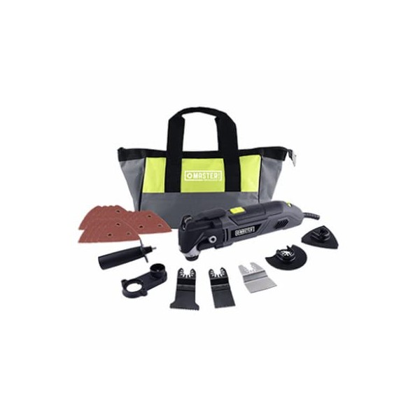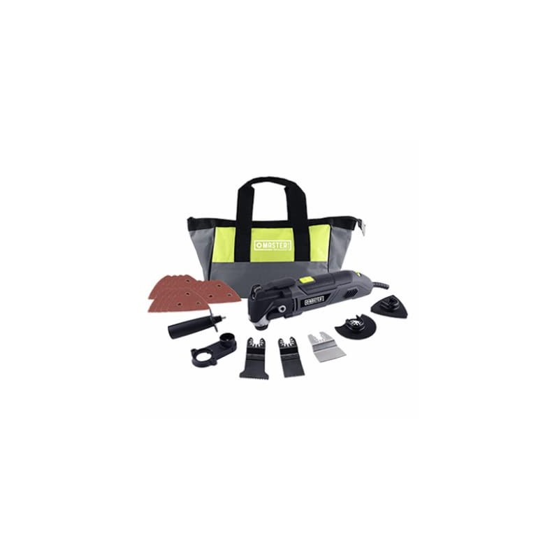 - Master Mechanic oscillating tool kit, 2.5A, 11000-22000 no load speed, tool free blade change, 3°ree. oscillating angle. LED lgiht, Includes 1 3-1/8" sanding pad, 12 sand paper sheets, 1 rigid scraper blade, 1 1-1/4" bi-metal flush cut blade, 1 high speed steel segmented saw blade, 1 1-3/4" coarse tooth blade, 1 side handle, 1 dust adaptor, compatible with Dremel, nylon tote.