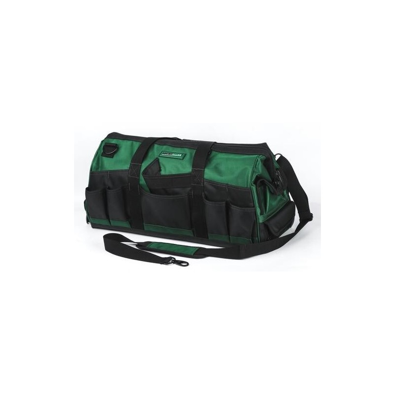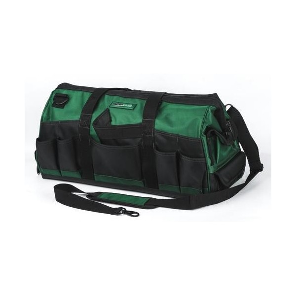 This tool bag is constructed from heavy-duty material for added durability. The special design of the bottom allows you to securely slide the plastic tray. The adjustable shoulder strap and reinforced carrying handles make transporting this bag a breeze. This bag opens wide for easy access to the bag's contents. The zipper closure protects your tools from dust and dirt keeps them secure.
