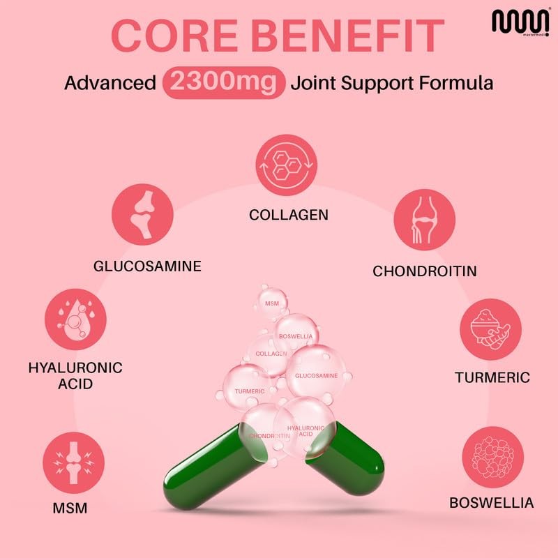mastermedi mastermedi Glucosamine Chondroitin MSM Collagen Capsules ?C 2300mg Joint Formula with Turmeric & Boswellia ?C 120 Capsules, 30-Day Supply ?C Non-Shark Sourced