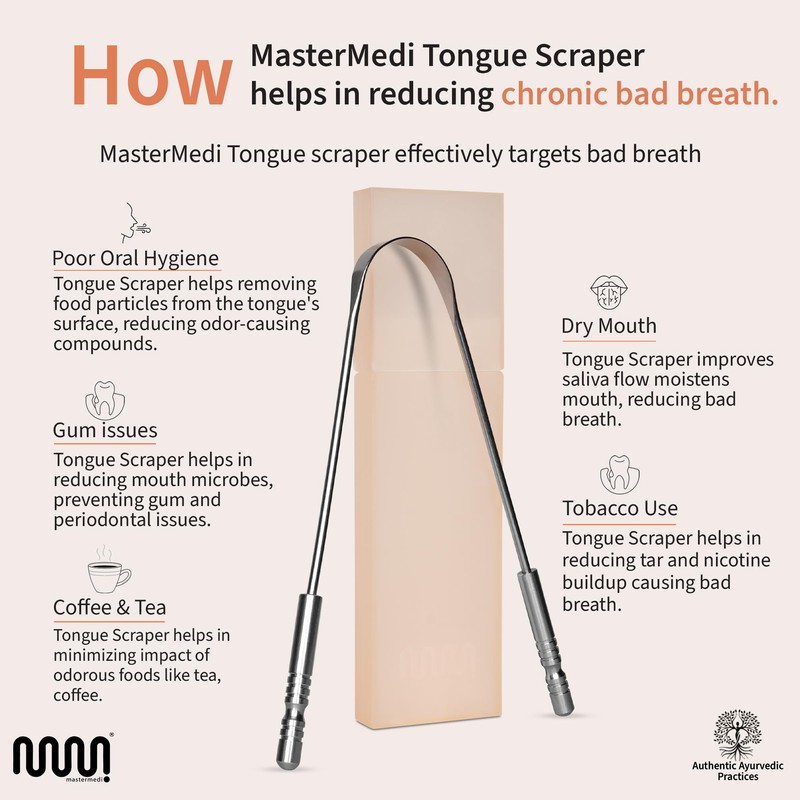 - GET RID OF GUNK & BAD BREATH: Whether you are trying to clear out the white, coated layer on your tongue or maintain better oral hygiene, MasterMedi tongue scraper for adults and kids has got you covered; Not just that, immediate benefits of scraping your tongue with this self care product include fresh breath for improved confidence and better overall health