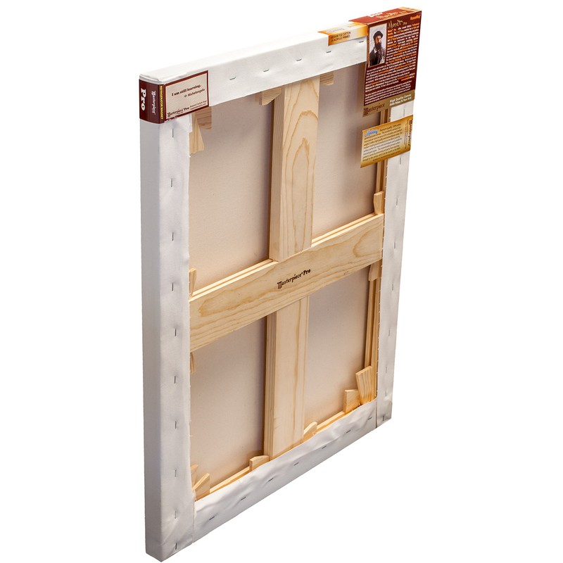 For 50+ years, the passion of the Masterpiece team is building the finest artist canvas in America. Just touch one of these impressive products and you’ll immediately discern the quality characteristics that separate this canvas from any other. Masterpiece takes pride in using high quality materials, employing unparalleled workmanship, and continually upping the bar on quality. The importance of artists using a quality made canvas cannot be overstressed. If you use high quality paints and brushes, then don’t waste your resources on an inferior canvas not worthy of your own time, talent, and reputation.Masterpiece canvases are built to last well beyond the artist's lifetime…into the next millennium. Savvy art buyers and art enthusiasts understand that the value of a painting increases when the materials used to create it are of equal quality to the artwork itself. Using a well-made canvas is an investment in your own legacy.Why are Masterpiece canvases so good? It starts with the canvas itself. Natural fiber canvas materials, like 100% cotton and Belgian Linen, are selected and inspected. A sizing is then applied to the canvas that becomes a barrier between the ultimate primer and the canvas material. The primer is specifically designed to provide the ultimate surface upon which your paints will join with the canvas, either chemically and/or mechanically, providing a reliable base or ground for your art.The canvas is then mounted onto a state-of-the-art Monet Pro frame. When frame sizes are 16” or larger, a brace is applied to the frame; for example, a 16x20 has a single brace, and a 20x20 is cross braced in both directions. The braces prevent the stretcher bar frame from bowing-in so the canvas stays tighter….which is a welcome feature when you paint on the canvas, making the surface more responsive to the artist’s touch. And the canvas stays tight after it’s painted. To increase the tension further, press-in the corner keys and the brace keys further into the slots, which adds tension in the corners and the middle of the canvas, where the tension is needed the most!Monet Pro canvas is MuseumWrapped, which is Masterpiece’s proprietary stretching technique that achieves: a drum-tight stretch, balanced tension across the canvas surface, neatly folded un-cut corners, and paintable edges. It’s the absolute best way to stretch a canvas.When your art matters, choose Monet Pro…a truly professional canvas in every way!