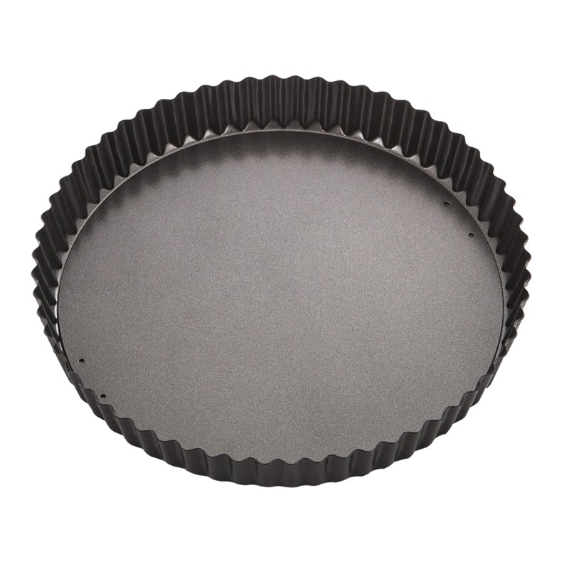 - Round heavy duty fluted flan/quiche tin featuring a loose base for easy food release, ideal for making quiches, flans or tarts
