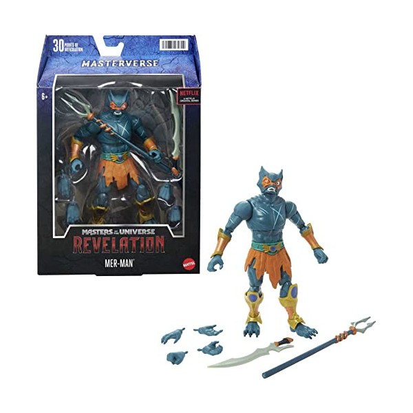 ​Masters of The Universe Masterverse Collection, Mer-Man, 7-in MOTU Battle Figures for Storytelling Play and Display, Gift for Kids Age 6 and Older and Adult Collectors
