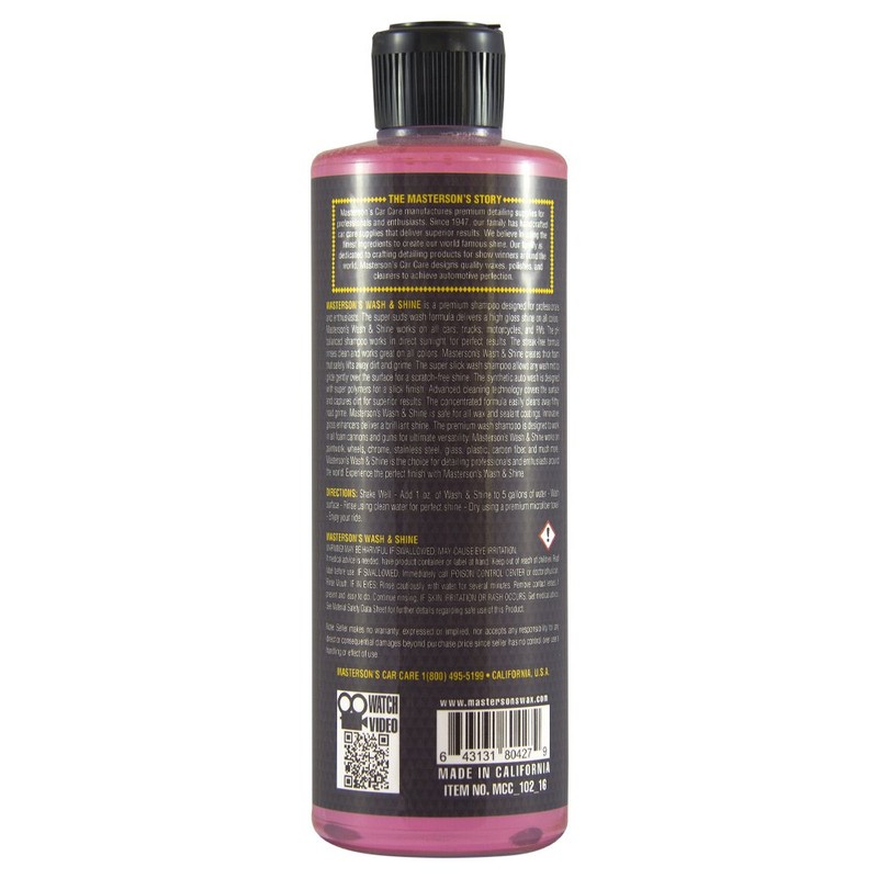 MASTERSON'S CAR CARE MCC_102_16 Wash & Shine Shampoo - Premium Car Wash Soap - Works With Foam Cannons, Foam Guns, Bucket Washes, and Power Washers (16 oz)