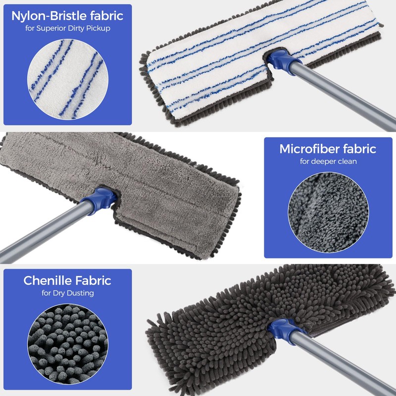 - [Extendable Durable Design] The microfiber mop is equipped with 45-inch durable and lightweight stainless steel metal poles. And the mops for floor cleaning can adjust the handle length according to actual needs, making the floor mop easy for different people to use without bending over for cleaning.