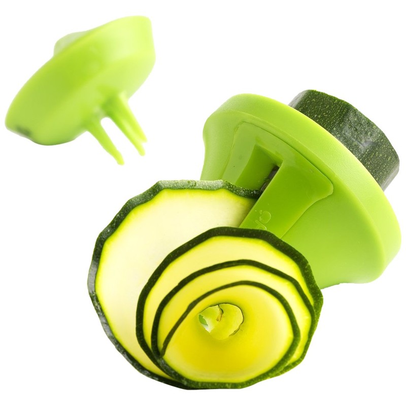 - ''' Deco Veggie-Slicer by Mastrad#||# A fun, easy way to enjoy vegetables; replace your favorite pasta with a flavorful vegetable alternative#||# Creates 3 different cuts: ribbons, 1/6-inch juliennes and 1/3-inch juliennes#||# Finger guard included for safety, while ensuring you can slice the entire vegetable without any waste#||# Optimum storage: 3 slicing heads and safety guard stack together to take up minimum space'''