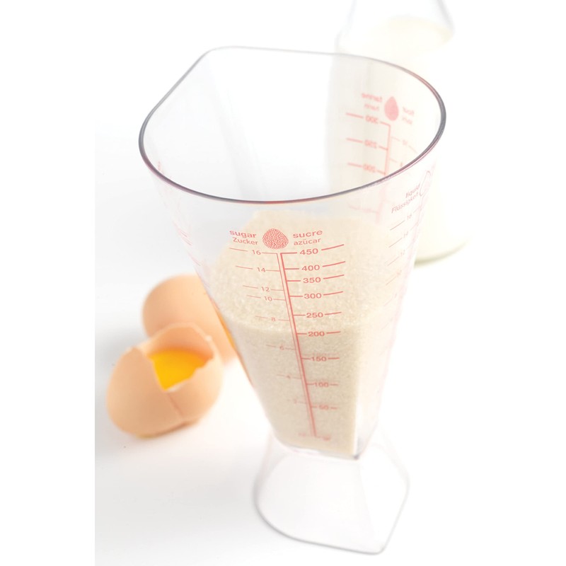 - PRÄZISES ABMESSEN: Während die Skala des Behälters für größere Messmengen geeignet ist, erlaubt der Umkehrausguss an der Unterseite des Messbechers präzisere und feinere Abmessungen für kleinere Mengen.