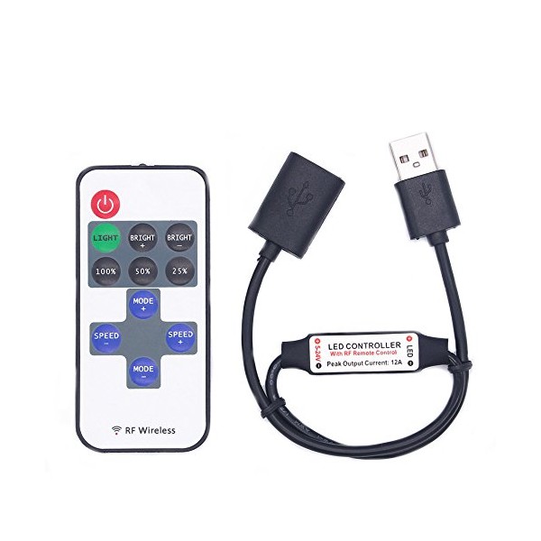 MASUNN DC5-24V 11 Keys Mini USB RF Wireless Dimmer Remote Control LED Controller for Single Color Strip