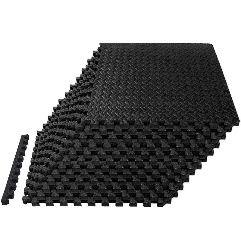 Mat Block Interlocking Foam Tiles Puzzle Mats for Floor 48 SQ FT, 1/2 inch, 12 Tiles, EVA Gym Mat Flooring Exercise Equipment Mat for Home Gym Equipment,APM12001BK, Black