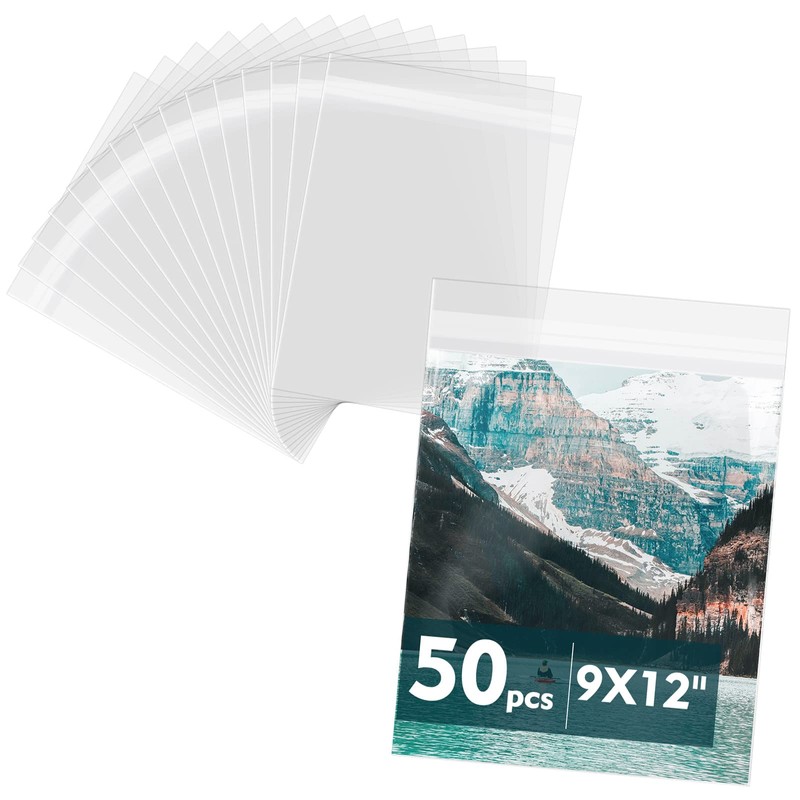 Mat Board Center, 50 Pack 9 7/16" x 12 1/4" Acid-Free Crystal Clear Sleeves Storage Bags for 9x12 Art Prints/Pictures/Photos/Framing Mat Mattes