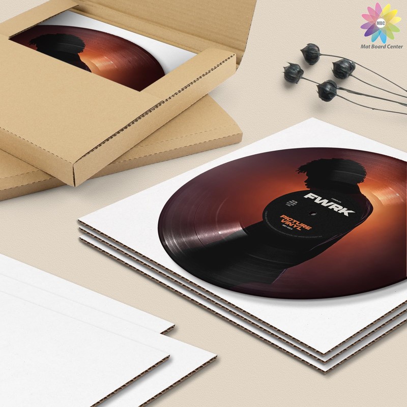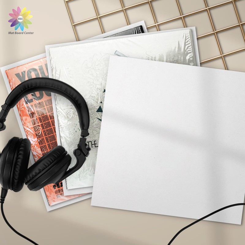 Mat Board Center, 50 Pack Vinyl LP Record Mailer Insert Pads, 12 3/8" Corrugated Cardboard Sheets, for 12" Vinyl LP Record Shipping Protecters (White on one side)