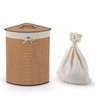 MAT EXPERT Bamboo Laundry Basket, 58 L Clothes Hamper with Removable Liner Bag & Built-in Lid with Handle, Space-saving Corner Triangle Laundry Hamper for Bedroom, Bathroom, Laundry (Bamboo)