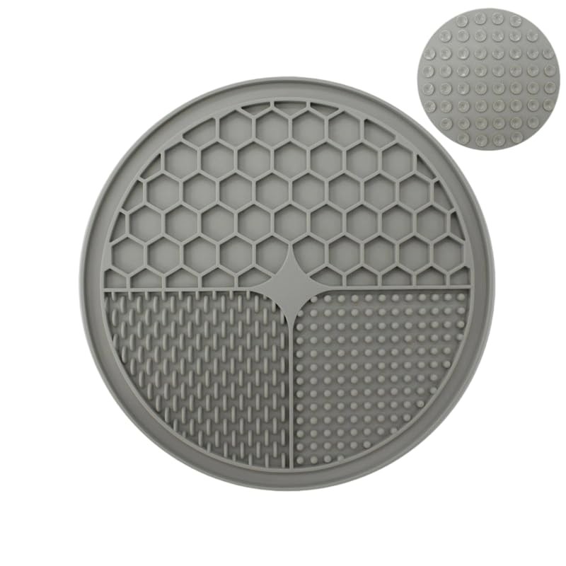 Mat for Dogs Lick, Dog Mat with Suction Cups for Anxiety Lick, Peanut Butter Dog Mat Slow Feeder Dispensing Treater Lick Pad for Dogs Cats Grooming Bathing and Training (Grey, 20cm*20cm)