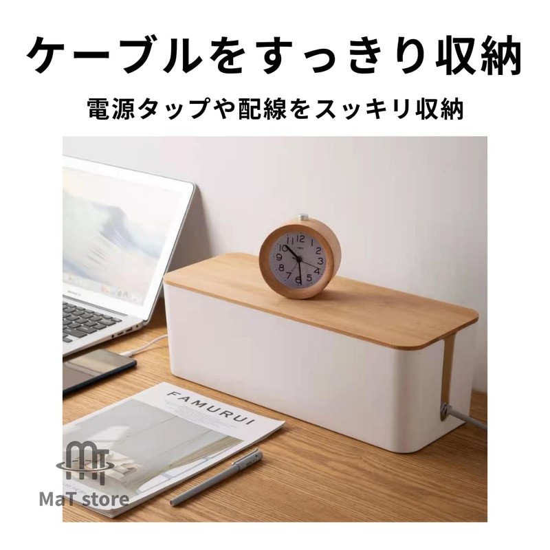 MaT store Cable Storage Box Cable Storage Wooden Case Cable Case Wire Slim (Black)