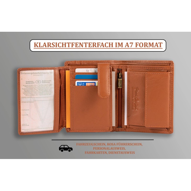 With this model made of cowhide leather, you have enough space for everything that is important to you. 10 card slots and 2 note compartments are available. In addition, 1 additional compartment with viewing window (old ID card and pink driving licence matching).