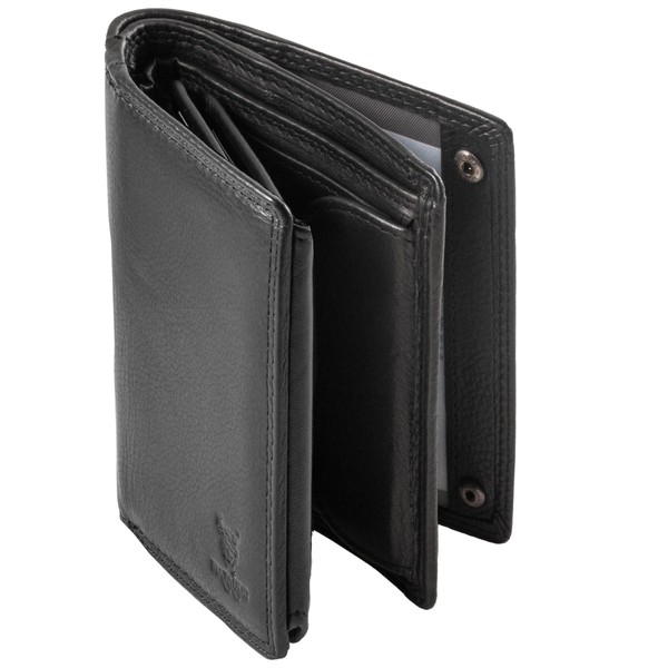 - Safety: your credit and debit cards are safe in the men's leather wallet. This is not a normal men's wallet, but an RFID wallet for men. Thanks to the integrated TÜV tested RFID protection, reading the cards is impossible.