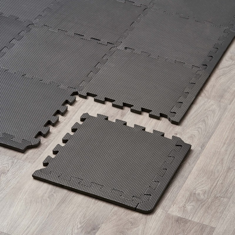 Foam Tiles Our interlocking foam tiles are perfect for protecting your floor and provide cushioning for a number of activities. They work well as an underlay for gym equipment, tables, and other heavy items that may otherwise damage your floor. The non-slip texture makes them ideal for home workouts. They can then simply be sprayed or wiped with an anti-bacterial solution and packed away if needs be.