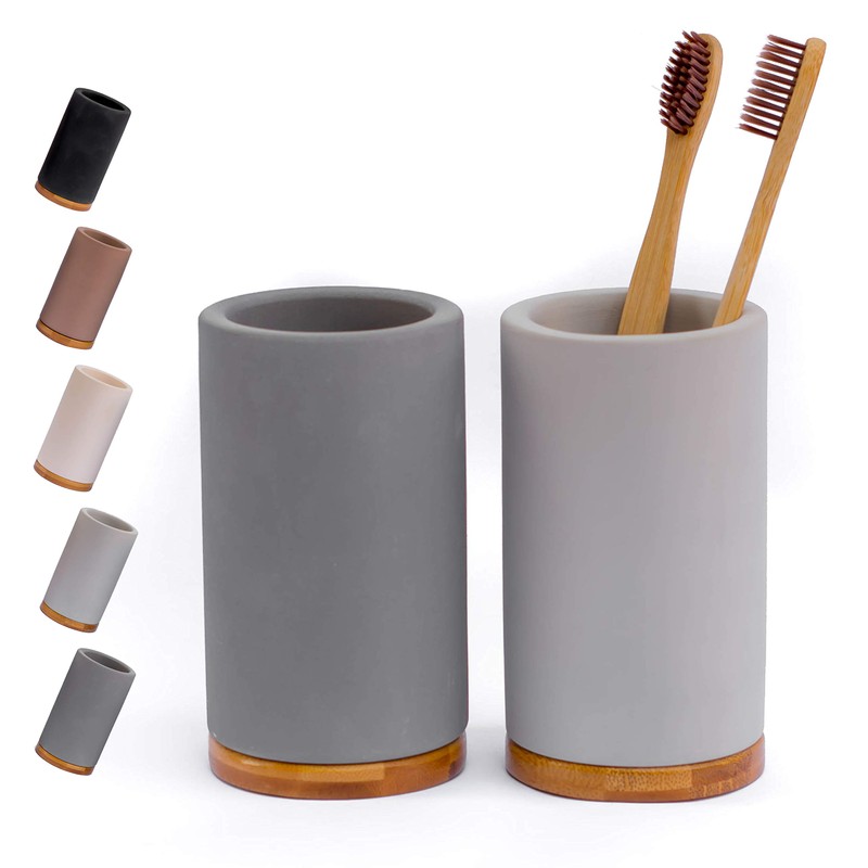 - 🌿 PREMIUM LOOK: crafted from single piece of Organic Bamboo Wood and Diatomite Minerals our toothbrush holder stands unique. The combination of these two materials are not only functional but will make any interior shine by its subtle, artistic and modern look. Each item is highly polished and carbonized for slightly darker tint and significantly improved water resistance. Our toothbrush holders fit great into your modern bathroom countertop.