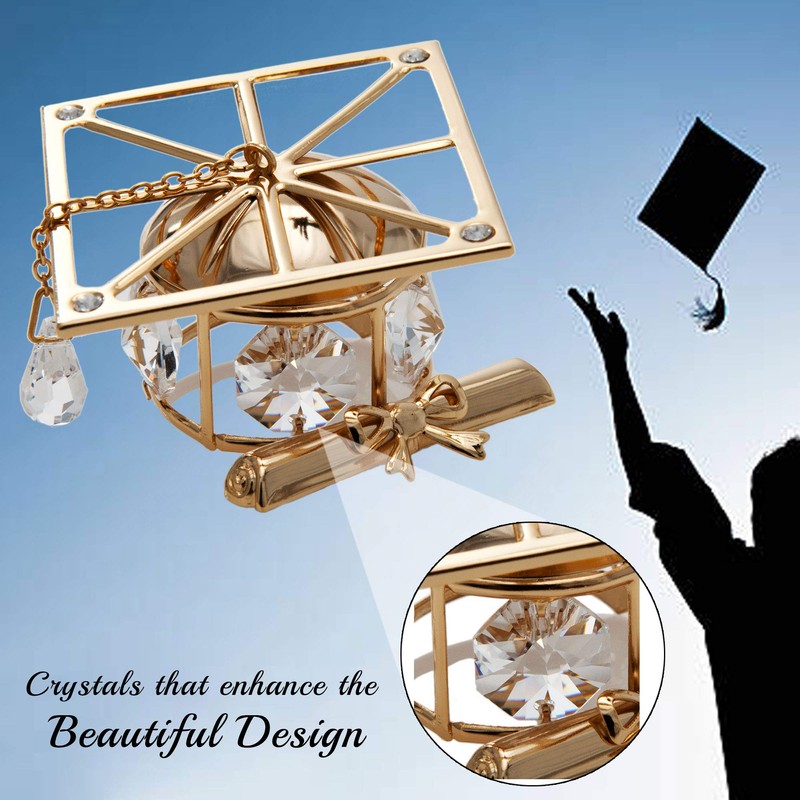 - EYE-CATCHING DESIGN: A cap and diploma with a crystal ended tassle is a perfect gift or momento for a student finishing one stage of their life; Crafted with quality materials like 24K Gold and studded with precision cut Matashi crystals.