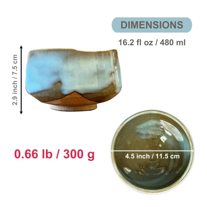 Matcha bowl Chawan, Mino Yaki Pottery Japanese Matcha Tea Cup, Green Tea Cup, Coffee and Soup Cup Made in Japan (Light Blue)