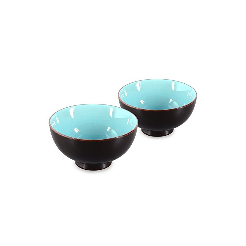 Set of 2 matcha bowls in sky blue, crackle pattern. With this matcha bowl, the wonderful light green of Matcha tea is particularly beautiful.