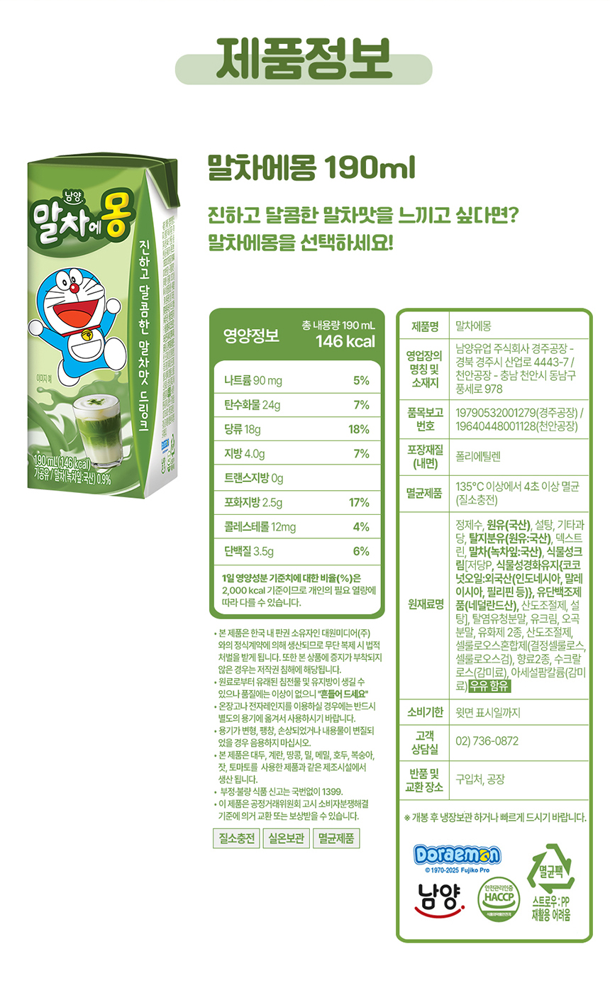 말차에몽190ml X 24팩