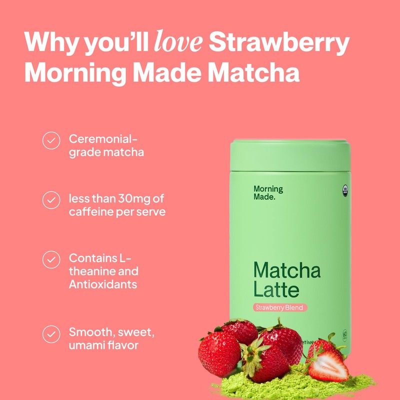 - CEREMONIAL GRADE STRABERRY MATCHA - A sweetened straberry blend of the highest quality, sourcing our matcha from the prestigious Uji region in Kyoto, known for its quality matcha production. Crafted from first harvest leaves, assuring the highest quality taste with every sip.