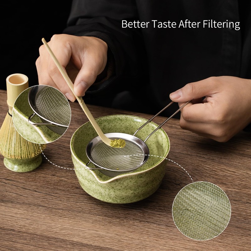 6*STAINLESS STEEL SIFTER: Ensure a smooth, lump-free matcha every time with this durable sifter. The fine mesh evenly distributes the matcha powder, making it easier to whisk into a silky, frothy drink.