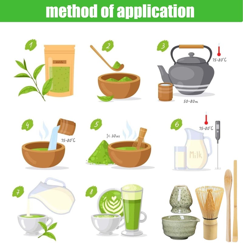 - High Quality Materials This matcha broom is an important tool for making matcha, handmade from a whole piece of bamboo, which is healthy, environmentally friendly, non-toxic and durable. The matcha bowl is made of ceramic, the fresh green colour ensures that people feel calm and happy