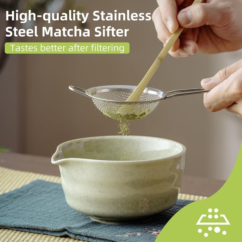 • 【Elegant Matcha Set】Our 5-piece matcha whisk set includes essential tools for an authentic matcha experience: 1* Bamboo Matcha Whisk, 1* Bamboo Scoop, 1* Stainless steel sifter, 1* 500ml/17 oz Ceramic Matcha Bowl, and 1* Whisk Holder. Suitable for both seasoned enthusiasts and beginners. You deserve a matcha set that makes you feel special every day.