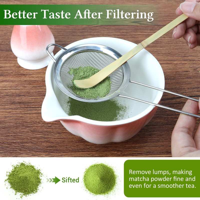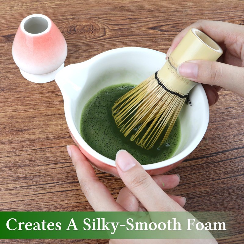 - Matcha Whisk Kit - Everything for authentic matcha prep: Get the authentic matcha experience with this essential 5-piece set. It includes a premium ceramic matcha bowl (Chawan) with pouring spout, a traditional bamboo matcha whisk (Chasen) and ceramic whisk holder, a bamboo scoop (Chashaku), and a stainless steel sifter. Premium tools engineered for effortless matcha making. Perfect starter set for matcha lovers